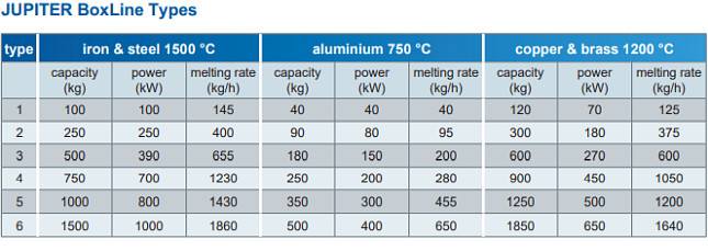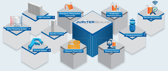 Vlastním produktem OTTO JUNKER Czech Republic s.r.o. jsou malé kompaktní standardizované středofrekvenční bezjádrové kelímkové indukční tavicí pece pro železo, měď, hliník a jejich slitiny JUPITER BoxLine.